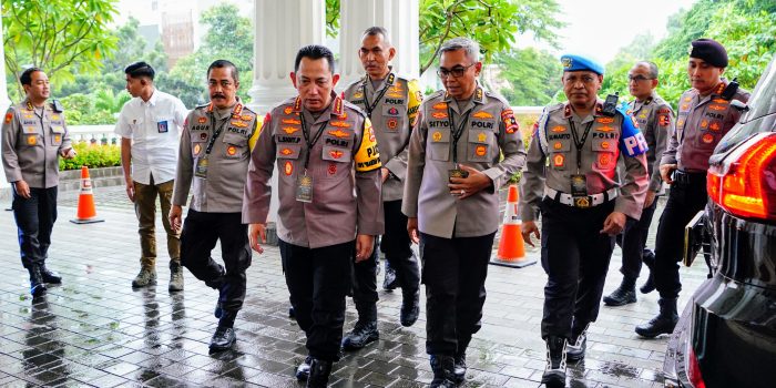 “Hari ini adalah rangkaian kegiatan Rapim TNI-Polri yang kemarin telah dibuka Bapak Presiden di Cilangkap. Tentunya masing-masing melaksanakan Rapim untuk tindaklanjuti beberapa direktif dari Bapak Presiden,” kata Sigit.