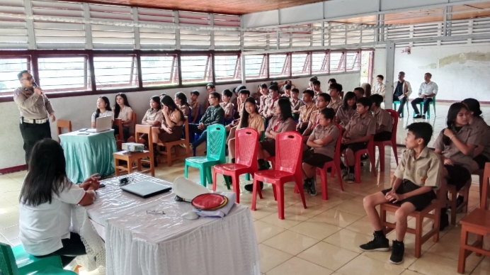 Puluhan siswa sekolah yang berlokasi di Kelurahan Bumi Beringin Manado ini ikut dalam kegiatan yang diadakan di aula sekolah.