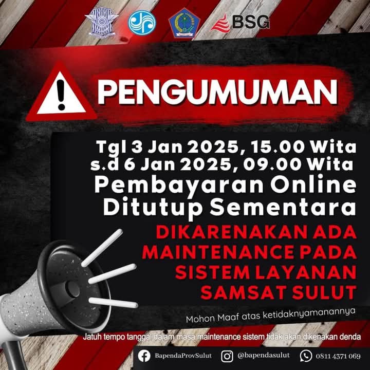 Penyebab penutupan sementara itu, sambungnya, dikarenakan adanya maintenance pada sistem layanan Samsat Sulut. (elka)