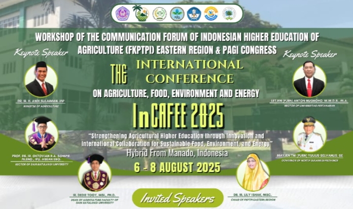 Meimonews.com – Fakultas Pertanian (Faperta) Unsrat Manado berkolaborasi dengan Forum Komunikasi Pendidikan Tinggi Pertanian Indonesia (FKPTi) Wilayah Timur Indonesia dan Perhimpunan Agroteknologi Indonesia (PAGI) akan menggelar International Conference on Agriculture, Food, Environment and Energy (InCaffe) 2025.