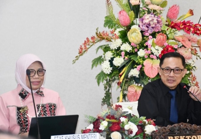 Mendampingi Tjitjik pada Rakor yang diadakan di Gedung Rektorat Unsrat Manado, Jumat (1/8/2025) dan dihadiri pimpinan Unsrat fan instansi terkait adalah Rektor Unsrat Oktovian Berty Alexander Sompie.