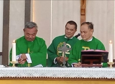 Misa dipimpin Pastor Ronny di dampingi Ketua Pusat Pastoral Keuskupan Manado (Puspa Kusuma) Pastor Frangki Runtu Pr dan Pastor Berty.