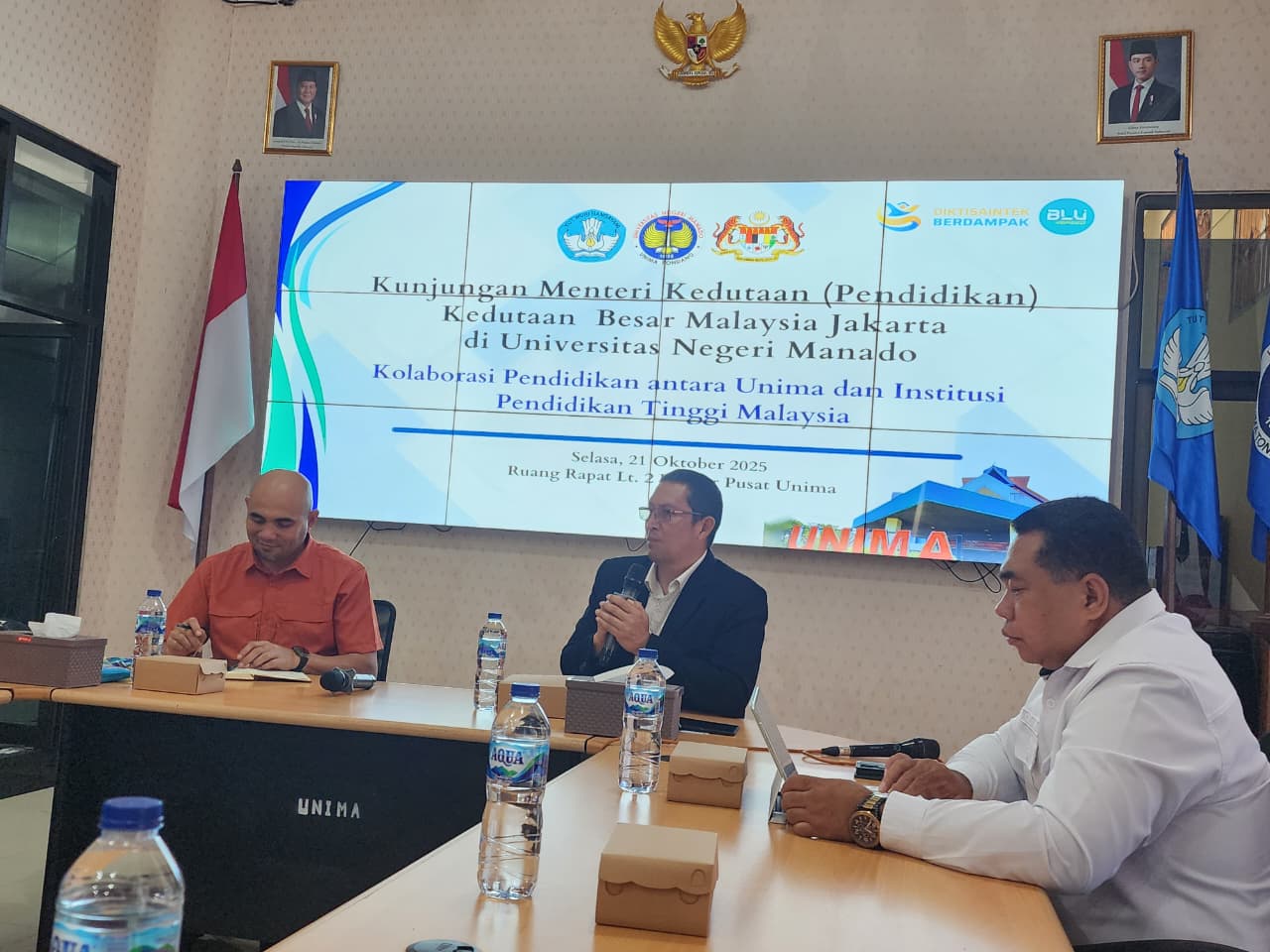Meimonews,com – Menteri Kedutaan (Pendidikan) Kedutaan Besar (Kedubes) Malaysia Jakarta Hasnul Faizal Bin Hushin Amri dan rombongan berkunjung ke Universitas Negeri Manado (Unima), Selasa (21/10/2025).