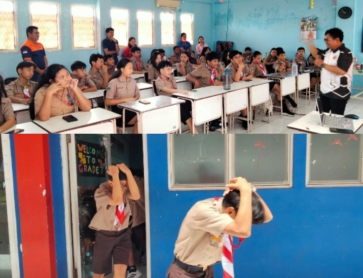 Meimonews.com – Badan Penangulangan Bencana Daerah (BPBD) Kota Manado melakukan kegiatan sosialisasi dan simulasi bencana alam gempa bumi di SMP Pionerr Manado, baru-baru.