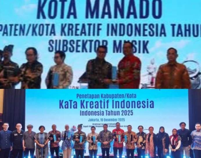 Capaian prestasi itu adalah Manado ditetapkan sebagai salah satu kota/kabupaten kreatif Indonesia tahun 2025. Penetapannya dilakukan Menteri Ekonomi Kreatif/Kepala Badan Ekonomi Kreatif Republik Indonesia Riefly Harsya.