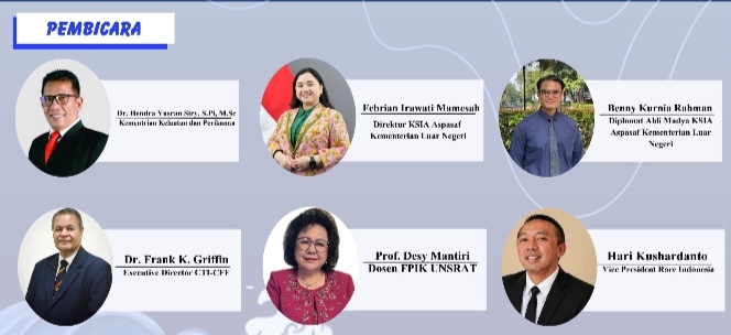 Ada enam pembicara penting tampil dalam kuliah umum ini yakni Hendra Yusran Siry (Kementerian Kelautan dan Perikanan RI), Febrian Irawati Mamesah (Direktur Kerja Sama Intrakawasan dan Antarkawasan Asia Pasifik dan Afrika Kemenku RI), Benny Kurnia Rahman (Diplomat Ahli Madya Direktorat Kerja Sama Kemenlu RI).