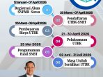 Pertama, Registrasi akun SNPMB siswa; kedua, Pendaftaran UTBK-SNBT; ketiga, Pembayaran biaya UTBK; keempat, Pelaksanaan UTBK; kelima, Pengumuman hasil UTBK; dan keenam, Masa unduh sertifikat UTBK.