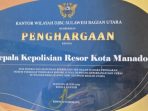 Penghargaan diserahkan Kakanwil DJBC Sulawesi Bagian Utara kepadaWakapolresta Manado AKBP Eko Sisbiantoro di dampingi Kabag Logistik Polreta Manado AKP Lilik Setyono mewakili Kapolresta Manado Kombes Pol. Julianto Parlindungan Sirait di Manado, Rabu (18/6/2025).