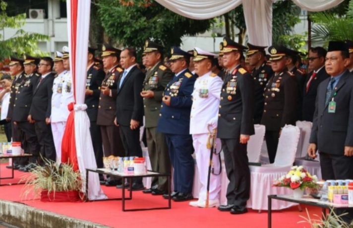 Upacara yang dipimpin (Inspektur Upacara) Gubernur Sulut Mayjen TNI (Purn) Yulius Selvanus s di dampingi Kapolda Sulut Irjen Pol Roycke Harry Langie ini dihadiri Wakil Gubernur Sulut Johanis Victor Mailangkay,, Forkopimda Sulut, para pejabat TNI-Polri, pemerintah daerah dan instansi terkait, Bhayangkari, tokoh agama, tokoh masyarakat serta tamu undangan lainnya.