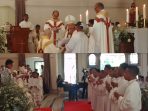 Misa dipimpin Uskup Manado Mgr. Benedictus Estephanus Rolly Untu MSC di dampingi Prokur/Ekonom Keuskupan Manado Pastor Yansen Dianomo Pr, Pastor Paroki Warembungan Alfianus Windy Tangkuman Pr dan Pastor Paroki St. Thomas Aquino Hermas Asumbi MSC serta Frater Diakon Michael Kewo Pr.