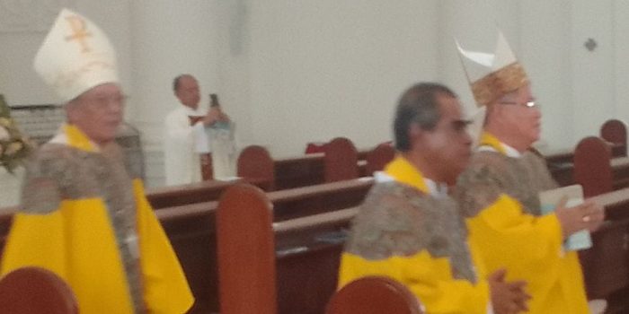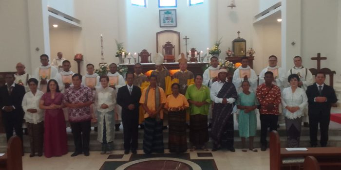 Misa dipimpin Mgr. Petrus Turang Pr (Uskup Emeritus Kupang), Uskup Manado Mgr. Benedictus Estephanus Rolly Untu MSC dan Uskup Amboina Mgr. Inno Ngutra Pr di dampingi belasan imam/pastor di antaranya Rektor Seminari TOR Poem Pastor Bonifasius Boro Bin Ola Pr dan Rektor baru Seminari TOR Poem Pastor Danny Surentu Pr serta dihadiri sekitar tamu/undangan dan umat setempat.