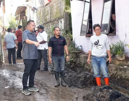 Wakil Walikota Manado Richard Sualang menyempatkan diri untuk meninjau lokasi terdampak banjir di Kelurahan Pakowa, Tanjung Batu dan Titiwungen Selatan, Kamis (8/5/2025). (Afer)